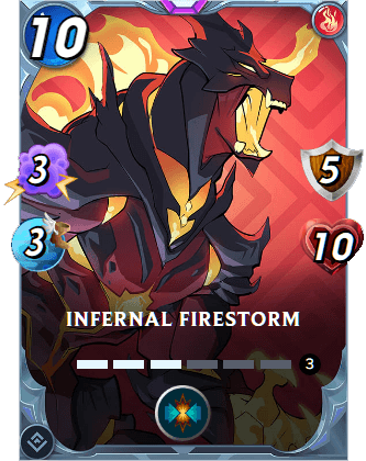 ![]() | Summoner of the fire deck that adds "melee" attack, "speed" attack and reduces "Health" to all of your cards. |