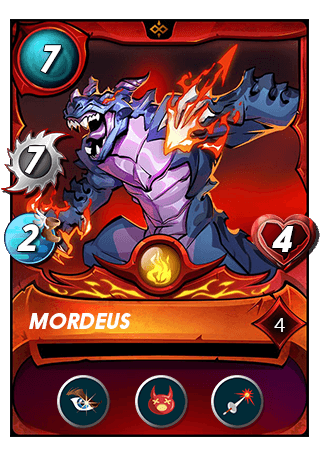 Na quinta posição, “Mordeus” como opção “Oportunity” e diversificar o ataque em posições secundarias no deck adversário, além de se aproveitar bem da regra “Blood and Sunder”, já que com sua habilidade “Piercing” ajuda na destruição da armadura adversaria.