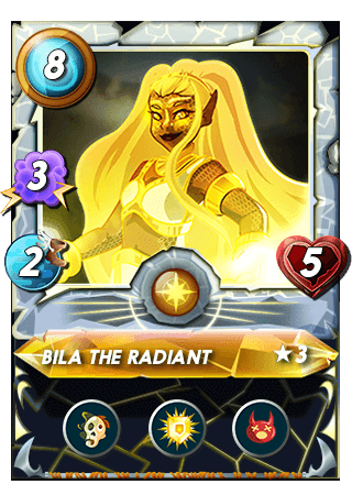 ![]() | carta melee com habilidades: "heal", "Piercing", "trample" e "divine shield" . |