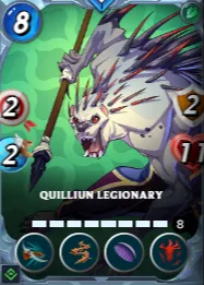 Na minha terceira opção o “Quilliun Legionary” que o nosso segundo “bloodlust” favorecido com “true strike”. Além de ser uma carta arqueira que realize ataques estando na primeira posição, tem contragolpe contra ataques “melee” pode representar uma boa armadilha quando a regra “Counterspell” estas presente na partida.