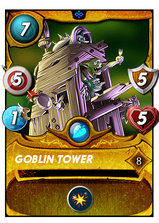 The "Globlin Tower" is an offensive alternative to advance in the front line with an additional attack, it can attack two cards in the same round, of course there is the risk of a card in the opponent's second position with "Matry", but it is still a good option.